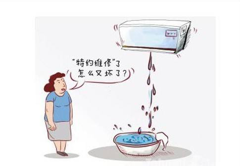 冷凝水進(jìn)入集水盤,卻沒(méi)有流向室外的通道。慢慢的集水盤里的水滿了,就會(huì)往外溢,造成內(nèi)機(jī)滴水。
