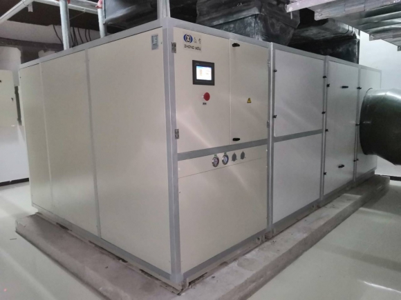 地下工程與地面工程相比,一個很突出的問題就是潮濕。在夏季,地下工程內(nèi)外空氣比焓差很大,普通除濕機(jī)沒有足夠的制冷量把新風(fēng)露點溫度控制得足夠低,難以保證新風(fēng)進(jìn)入地下工程后不結(jié)露,從而給通風(fēng)除濕系統(tǒng)的設(shè)計和運行帶來諸多問題;同時室內(nèi)處理好后的適宜空氣直接排至室外也會造成能源的極大浪費。