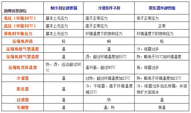Ø、制冷循環(huán)系統(tǒng)堵塞,毛細(xì)管或干燥過(guò)濾器堵塞后,流入蒸發(fā)器的液體制冷劑減少,制冷量下降。