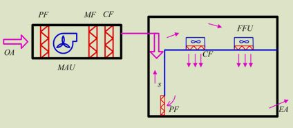 Fan Filter Units,中文意思為'風機濾器單元(機組)'。也就是將風機和過濾器(高效過濾器(HEPA)或超高效過濾器(ULPA))組合在一起構成自身提供動力的末端凈化設備。確切地說是一種自帶動力、具有過濾功效的模塊化的末端送風裝置。風機從FFU頂部將空氣吸入并經HEPA過濾,過濾后的潔凈空氣在整個出風面以0.45m/s±20%的風速均勻送出。