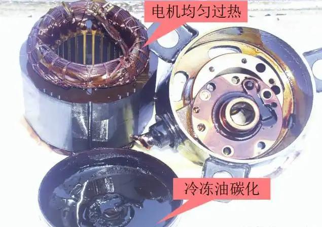 冷凍油主要是起到潤滑和密封的作用,如果系統(tǒng)出現(xiàn)缺油或者是油變質(zhì)將導(dǎo)致壓縮機的磨損或者是高溫,從而造成電機的負載增加或者是卡缸及抱軸等等情況。