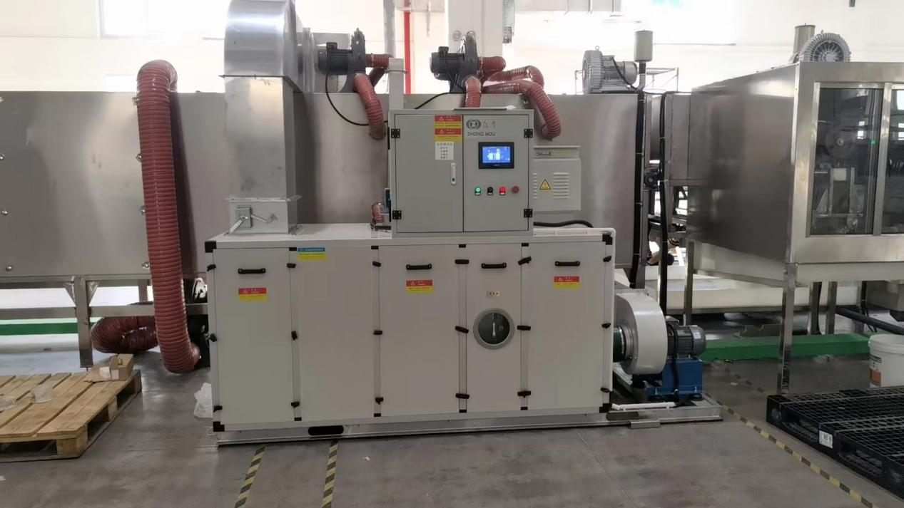 該組合式轉(zhuǎn)輪除濕機(jī)組同時(shí)能根據(jù)用戶需求進(jìn)行溫度、濕度的調(diào)節(jié),滿足各軟膠囊生產(chǎn)需要。亮點(diǎn)是防止機(jī)組運(yùn)行過(guò)低濕度導(dǎo)致,軟膠囊過(guò)干變硬的措施,用戶在設(shè)置完參數(shù)后,機(jī)組圍繞設(shè)置參數(shù)進(jìn)行運(yùn)行,濕度到達(dá)用戶設(shè)定值時(shí),機(jī)組的除濕功能進(jìn)入節(jié)能待機(jī)狀態(tài),當(dāng)機(jī)組濕度超出用戶設(shè)置值時(shí),機(jī)組除濕功能運(yùn)行。可使用戶在無(wú)人的夜間也能正常運(yùn)行及監(jiān)控。