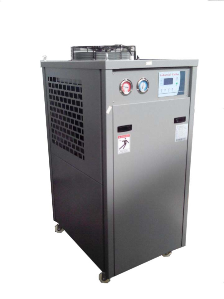 一副模具就是一個換熱器,熱量由融熔的塑料傳入模具,再由模具傳入不斷循環(huán)的冷卻介質——冰水中,只有很小一部分進入空氣和注塑機的壓模板。眾所周知,塑料成型的周期,相當大的部分用于冷卻,有時可占到塑料成型周期80%以上,因此將冷卻時間控制到最小是絕對必要的。那么,注塑機如何選用合適的工業(yè)冷水機,從上面我們即可知道,它與成型材料的比熱容、熔膠時的溫度,重量以及制品脫模時的溫度有關。
