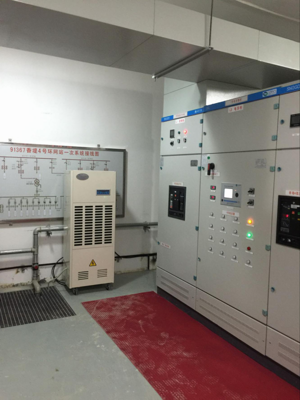 配電室是企業(yè)的供電心臟,雖然其結(jié)構(gòu)形式簡單,但建造時多預(yù)埋件和孔洞,防滲漏等級要求高,且內(nèi)部布有多種高壓電氣設(shè)備,在使用過程中,一旦發(fā)生雨季滲漏,將嚴(yán)重威脅供電安全。配電室多為單層砌體結(jié)構(gòu)或磚混結(jié)構(gòu),雖然其結(jié)構(gòu)形式簡單,但由于配電室功能的特殊性,在房屋防滲漏方面,提出了較高的要求。房屋滲漏主要有屋頂滲漏、外墻滲漏和門窗洞口滲漏等形式。高壓電氣設(shè)備對濕度非常敏感,房屋如果在雨季發(fā)生滲漏,會降低室內(nèi)高壓電氣設(shè)備的絕緣性能,甚至由于滲漏嚴(yán)重出現(xiàn)滴水現(xiàn)象,造成電氣設(shè)備短路,導(dǎo)致跳閘事故。 由此可見,配電室防潮工作也很重要,若是配電室內(nèi)的空氣濕度過高,過于潮濕的空氣勢必會對配電室的電子電氣類設(shè)備產(chǎn)生很大的負(fù)面影響。輕者可能會導(dǎo)致設(shè)備內(nèi)部線路短路,經(jīng)常出現(xiàn)開關(guān)跳閘等問題,重則可能會使配電系統(tǒng)癱瘓,配電室的安全與否,直接影響整個供電系統(tǒng)是否能正常的運行;因此,在配電室使用除濕機對濕度的控制是非常有必要的。