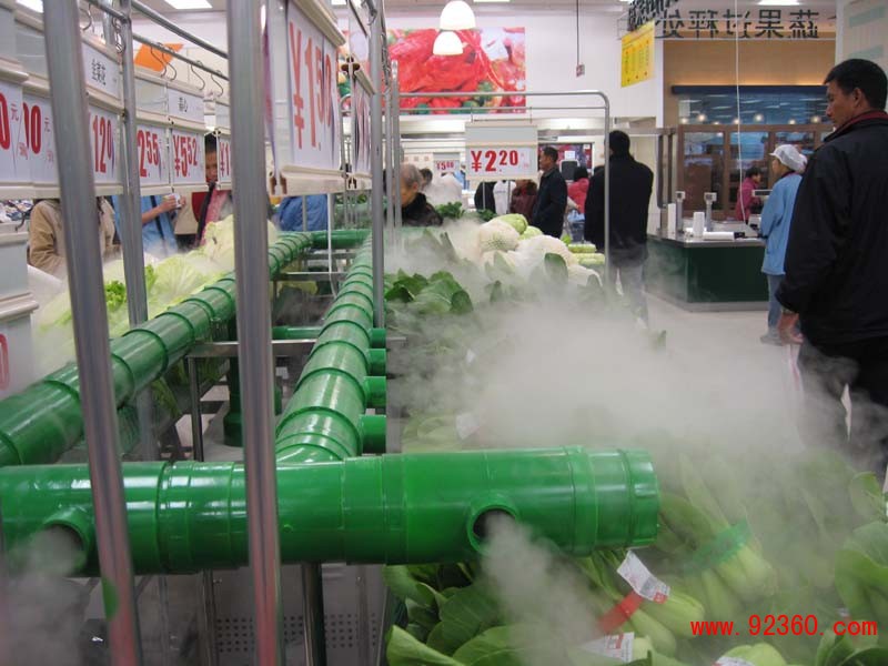 案例:超市的蔬菜柜臺,在霧氣中浮現(xiàn)的蔬菜水果,看上去就像清晨剛從果園菜地里摘下來一樣新鮮。據(jù)介紹,這是超市為延長蔬菜水果的“壽命”而啟用的新式“武器”,其噴出的霧氣一來可以保持低溫,二來能均勻保持水分,三來整個(gè)區(qū)域降溫造景。超市的蔬菜水果賣場中,一些青菜水果常因水分蒸發(fā)變質(zhì),導(dǎo)致“賣相”不好。新引進(jìn)的噴霧系統(tǒng)令不少顧客好奇不已,經(jīng)霧化的水汽可使空氣保持一定的濕度和低溫,使青菜水果常置于鮮嫩保質(zhì)之中。